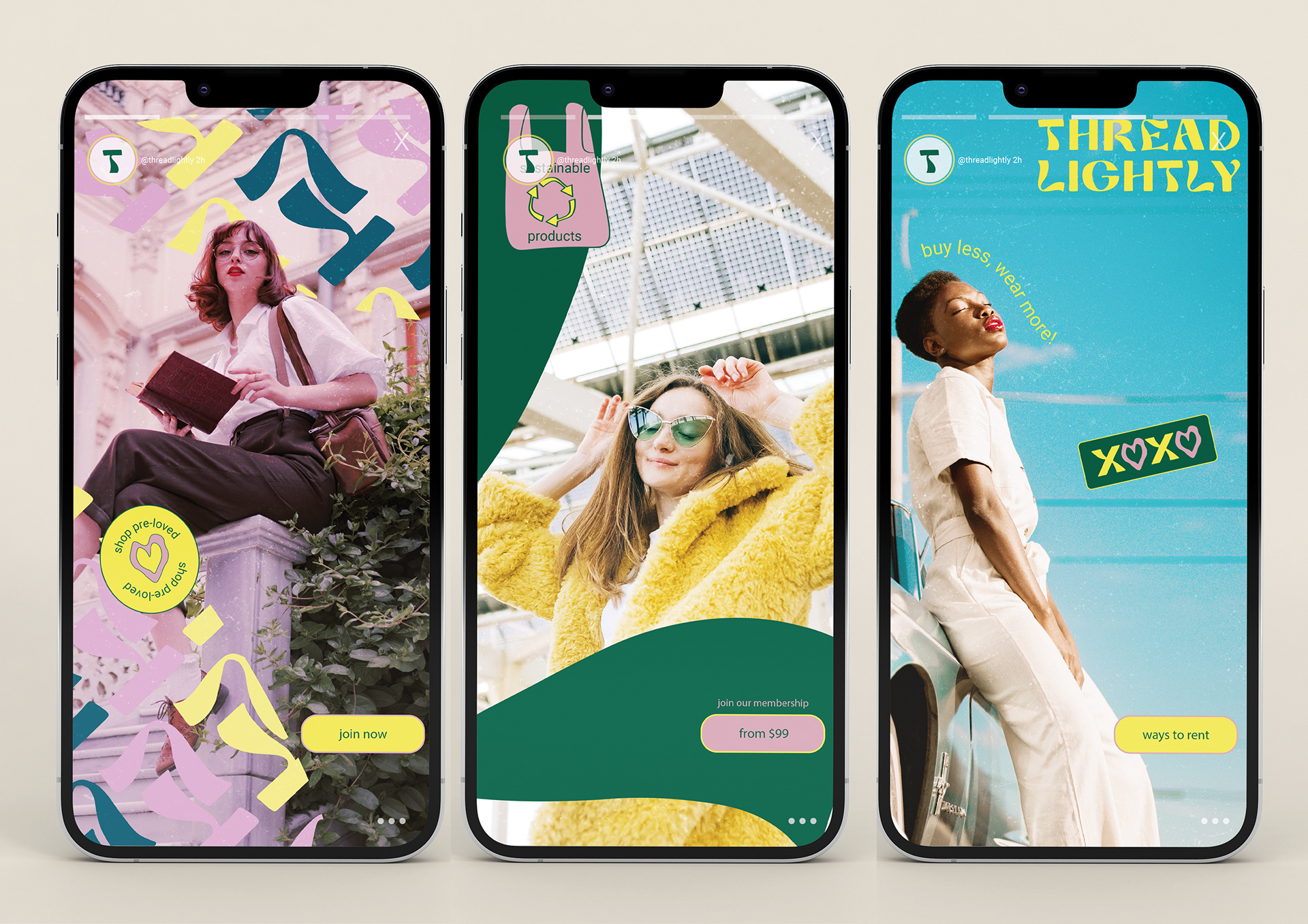 A whimsical brand identity that contributes to a sustainable future for fashion by encouraging customers to buy less and wear more. Thread Lightly is a quality, sustainable and timeless fashion subscription service for pre-loved designer clothes.